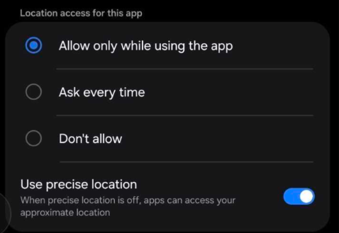 Select "Allow only while using the app".